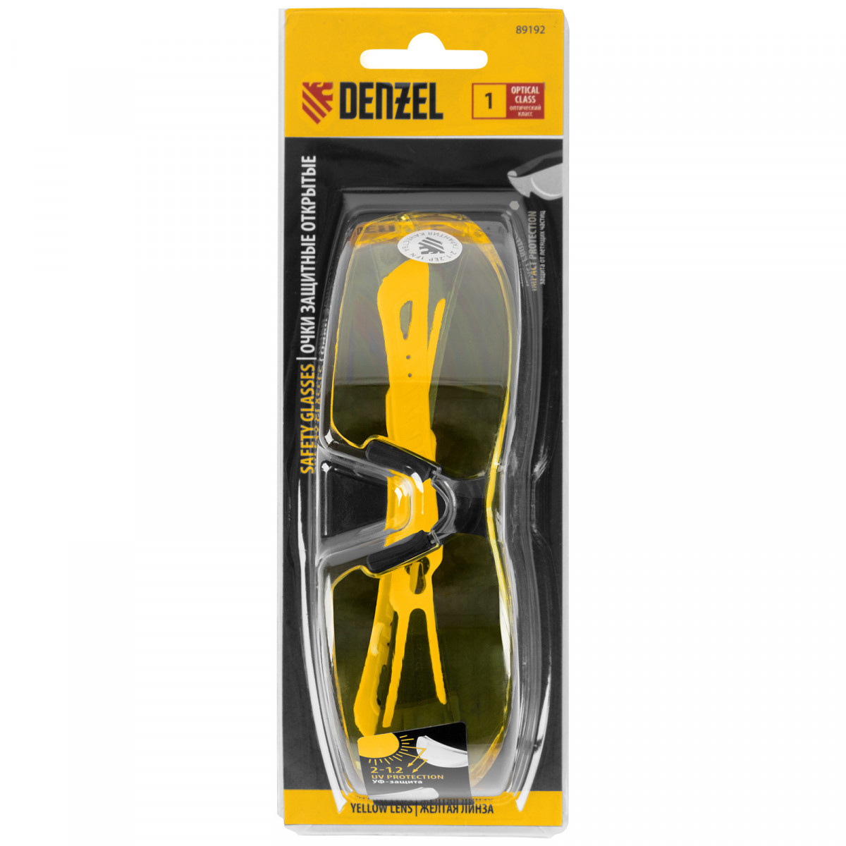 Очки защитные открытые, поликарбонатные, желтая линза, 2х комп.дужки Denzel
