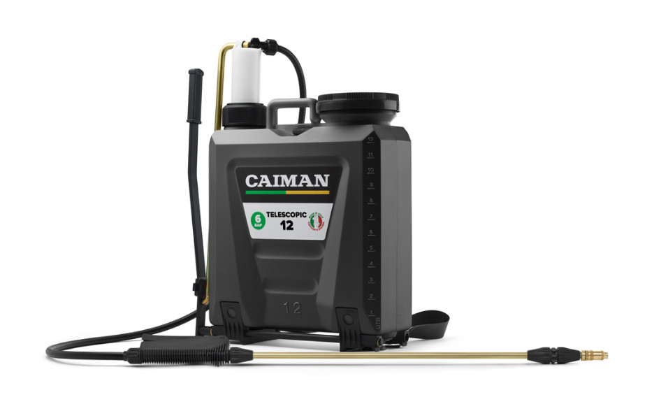 Профессиональный ранцевый опрыскиватель CAIMAN Telescopic 12 с ручным помповым насосом и телескопической насадкой обладает высокой стойкостью к агрессивным жидкостям (гербициды, низкие растворы кислот, каустическая сода, хлорная известь, моющие средства и т.д.) и способен работать ежедневно в длительном режиме. Модель можно применять для садовых и промышленных целей.