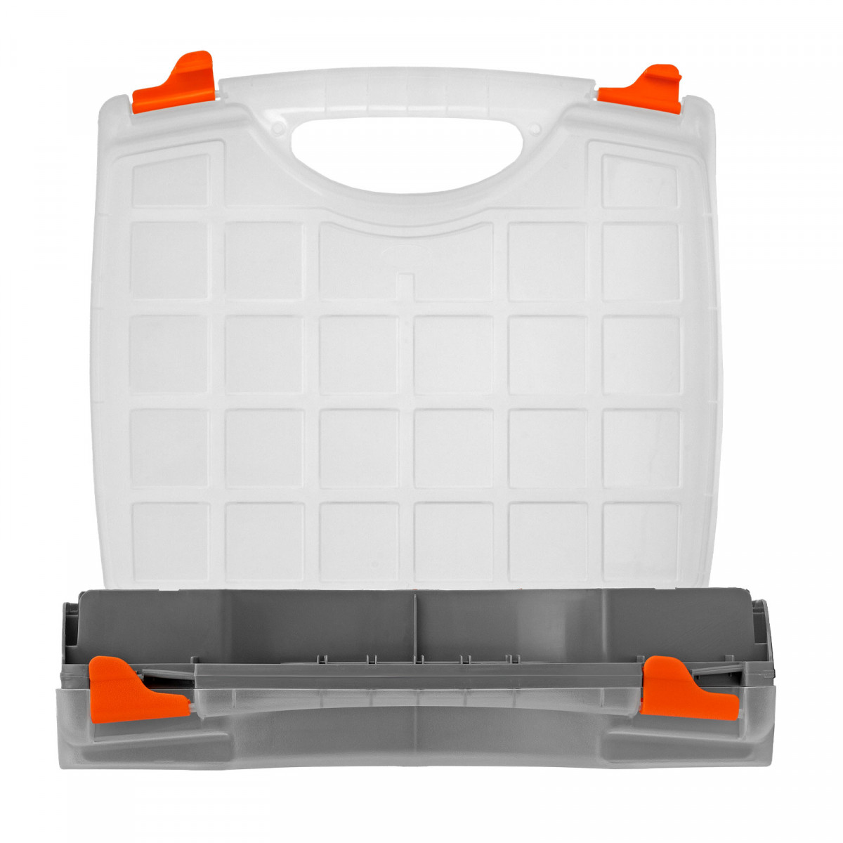 Двухсторонний органайзер из пластика Stels 90709 размером 325 х 280 х 85 мм пригодится в хозяйстве и мастерской для хранения крепежных элементов, принадлежностей для рукоделия, снастей и т.д. Он обеспечивает быстрый доступ к предметам, не допуская их перемешивания и утери.