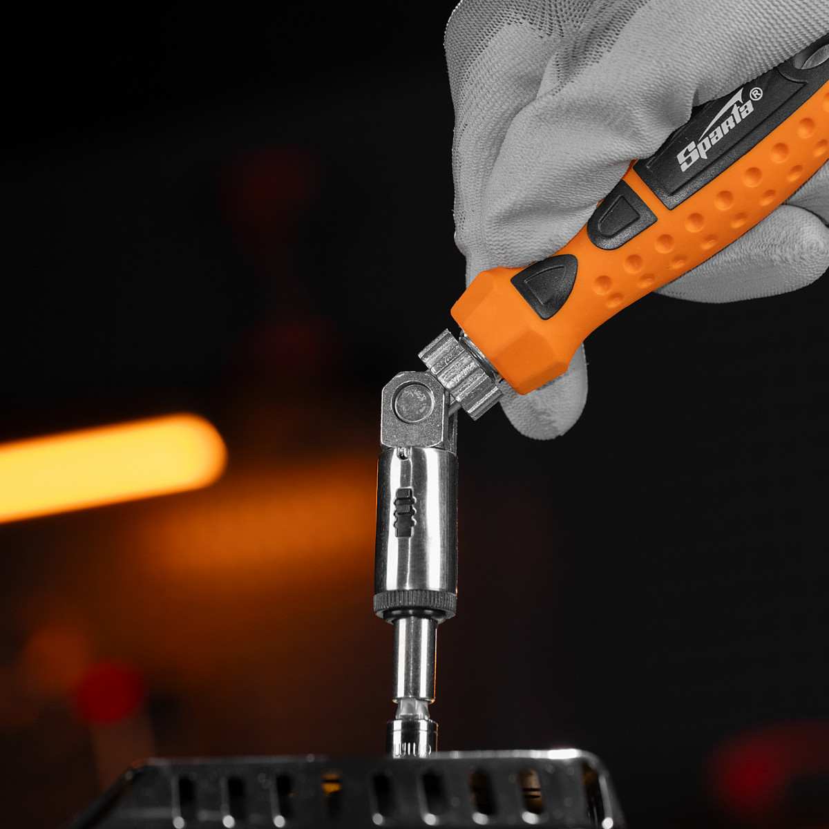 - Поворотная голова с пятипозиционной фиксацией обеспечивает возможность работы в труднодоступных местах и ограниченном пространстве.