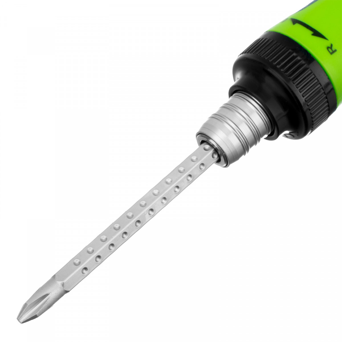 • Удобная работа в труднодоступных местах — длина стержня составляет 160 мм, степень его выступания из отвертки можно регулировать.