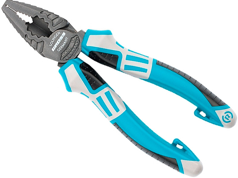 Плоскогубцы имеют дополнительные внутренние грани и могут использоваться как гаечный ключ М8 до М10 / Ø 11-17 мм. Режущие кромки закалены индукционными токами. Смещение шарнира к режущим кромкам увеличивает эффективность реза на 20%. Эргономичная форма рукояток позволяет придать руке оптимальное положение, что снижает усталость и травматизм при длительной работе. Трехкомпонентные рукоятки выполнены из сочетания пластика и резины. Ребра жесткости на внешних металлических частях инструмента делают конструкцию более прочной. Инструмент имеет специальное антикоррозийное покрытие «титан-финиш». Нижняя часть рукояток оснащена дополнительными упорами, на которые можно установить пружину для авторазжима или скобу с подвесом, что расширит функции инструмента.
