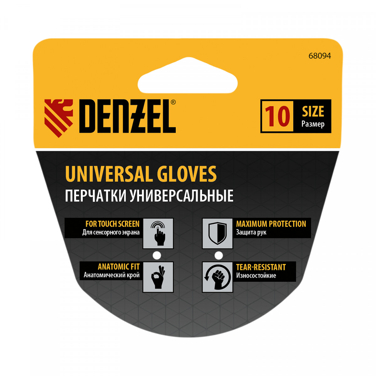 Перчатки универсальные, двойные, работа с сенсорным экраном, вязаная манжета, размер 10 Denzel