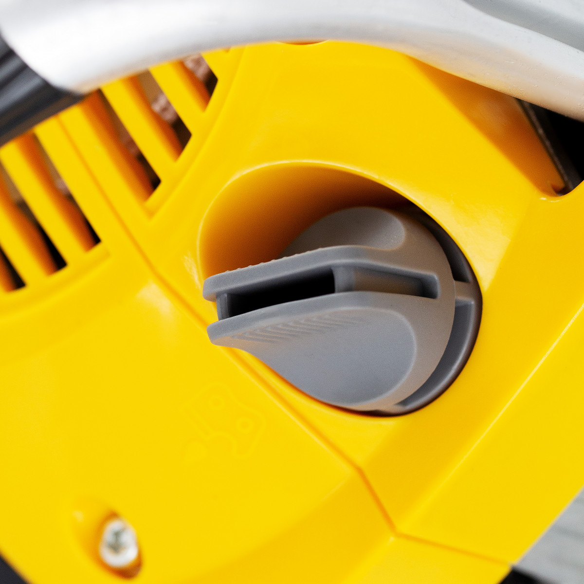 - Стальной зубчатый упор — пилу удобно фиксировать в процессе работы для повышения качества реза и уменьшения отдачи.