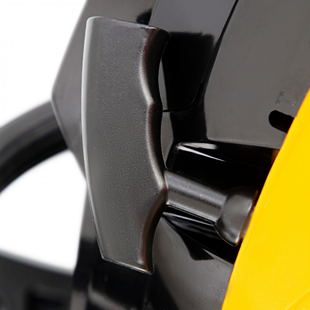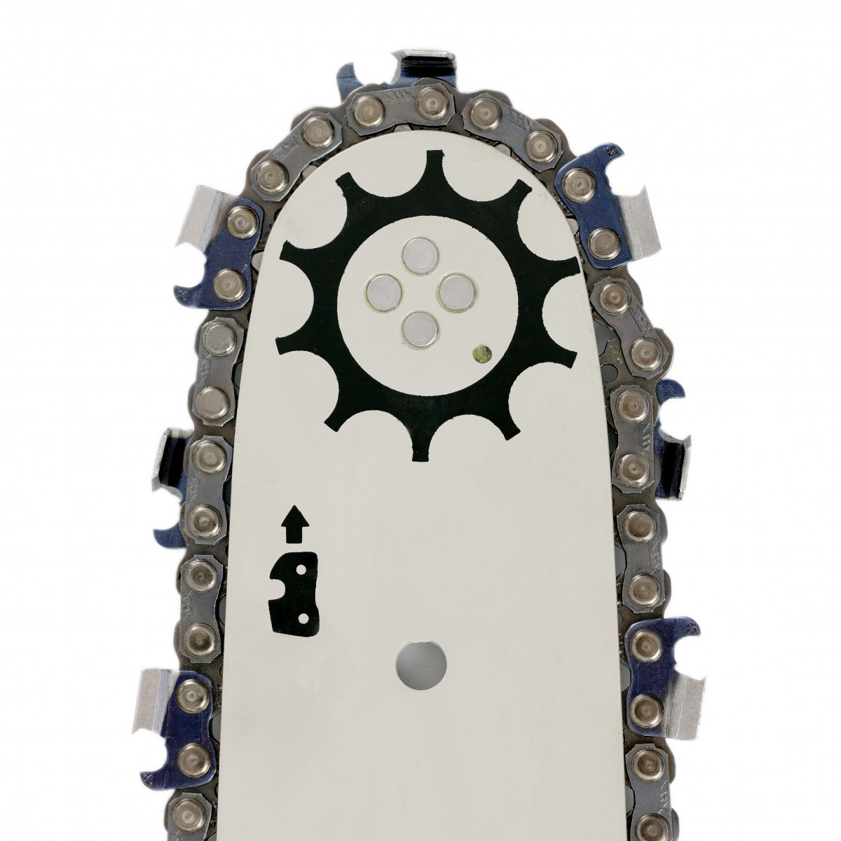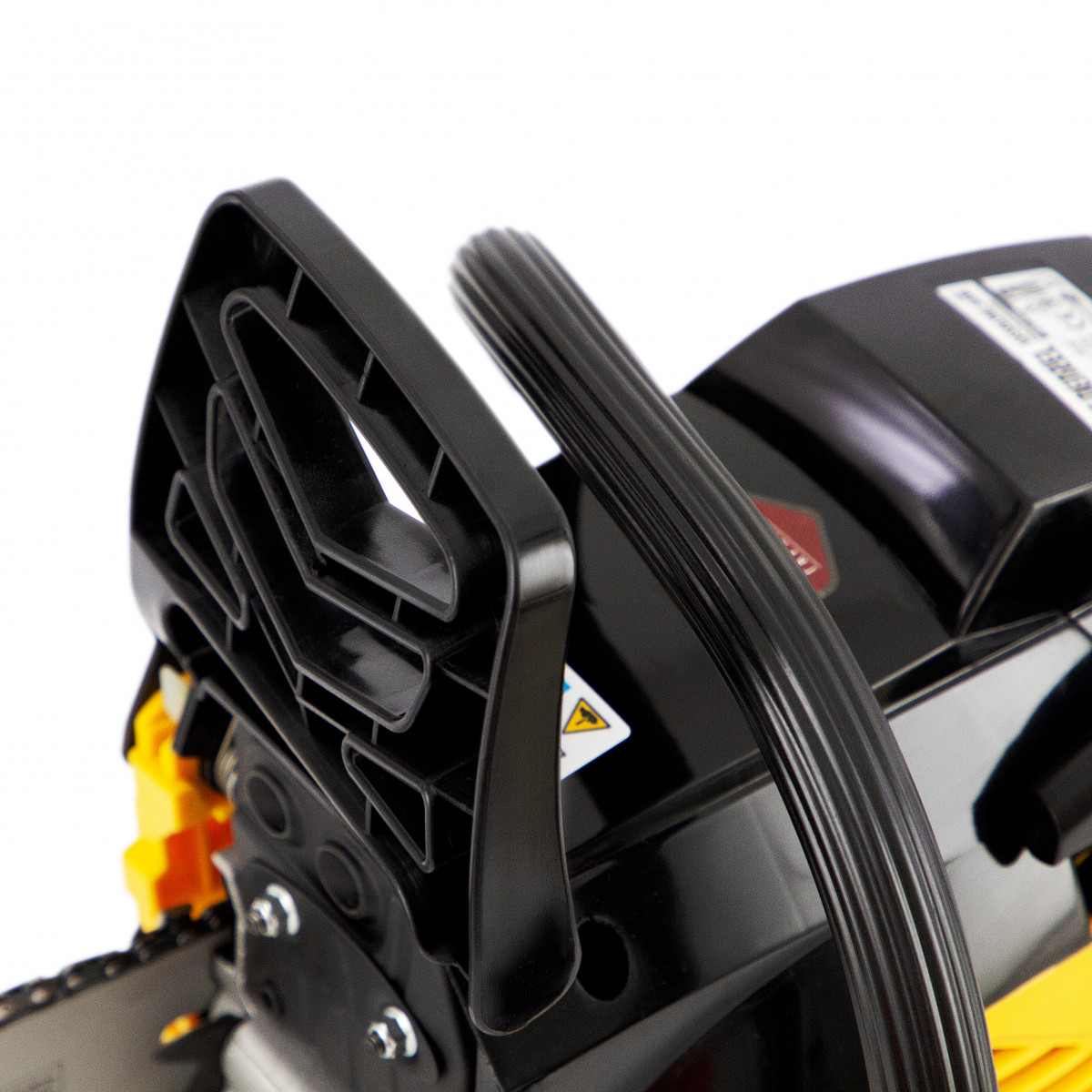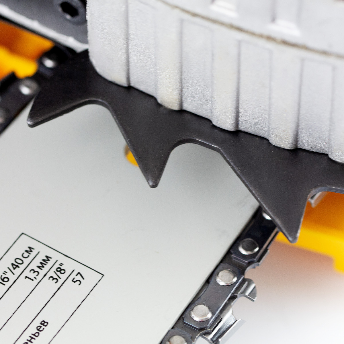 - Безопасность пользователя — специальный щиток и автоматический тормоз цепи уменьшают риск получения травм при отскоке пилы, также предусмотрена защита от случайного пуска.