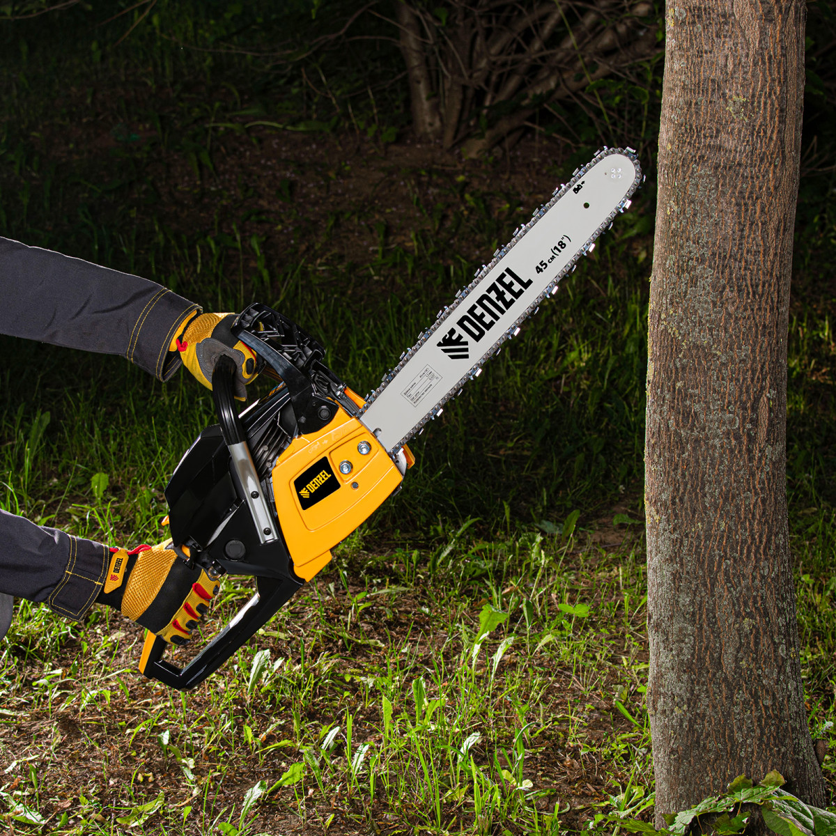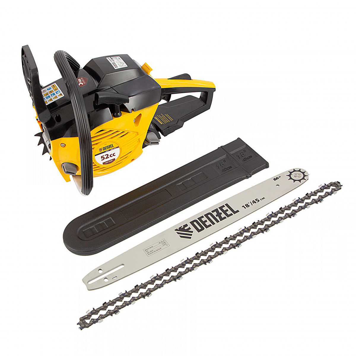 Пила цепная бензиновая DGS-5218, шина 45 см, 52 см3, 3.5 л.с, шаг 0.325, паз 1.5 мм, 72 звена Denzel
