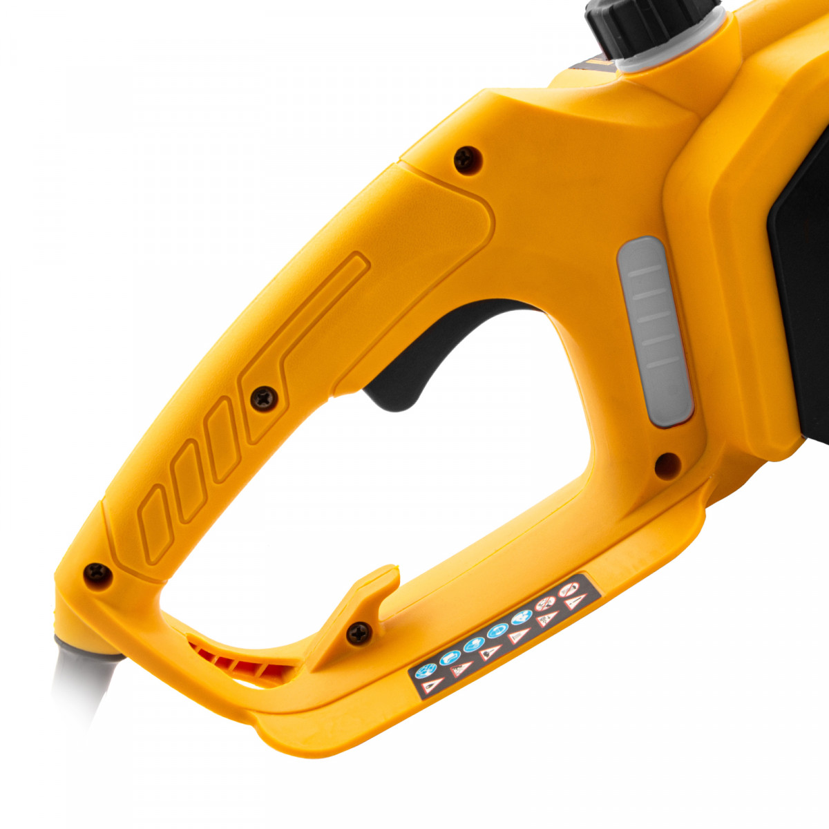 - Продуманная конструкция — на задней рукоятке имеется держатель для кабеля удлинителя.