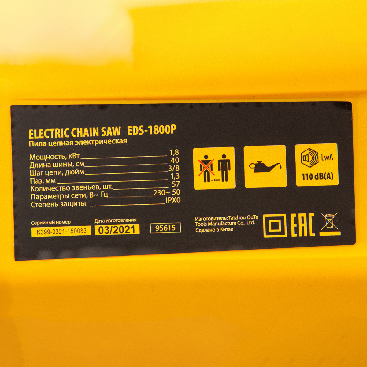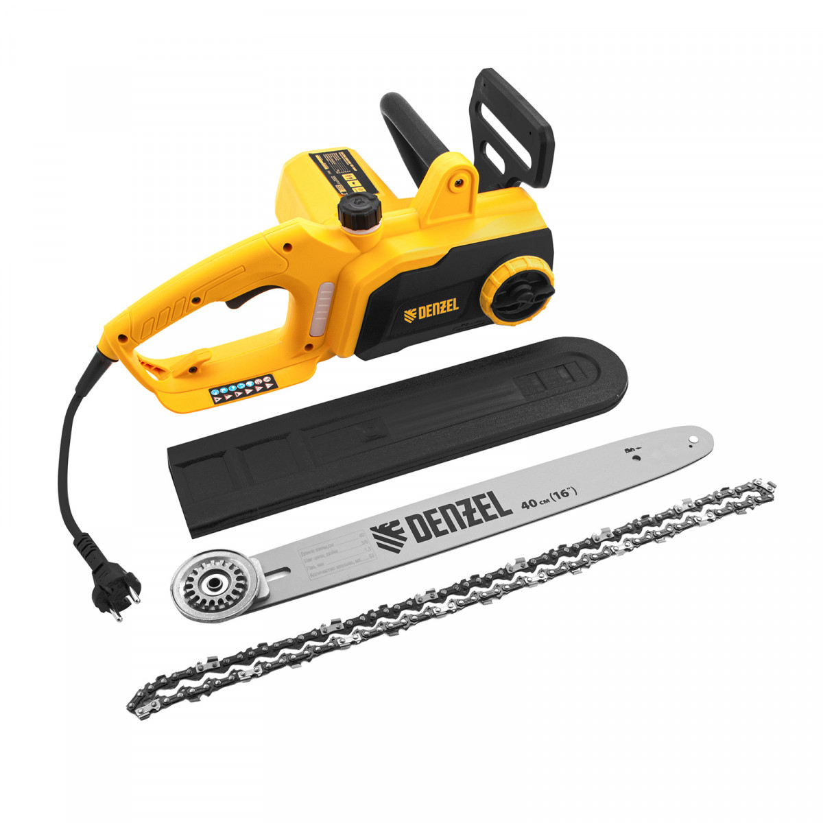 Пила цепная электрическая EDS-1800P, 1.8 кВт,поперечная, шина 40 см, шаг 3/8, паз 1.3 мм, 57 звеньев Denzel