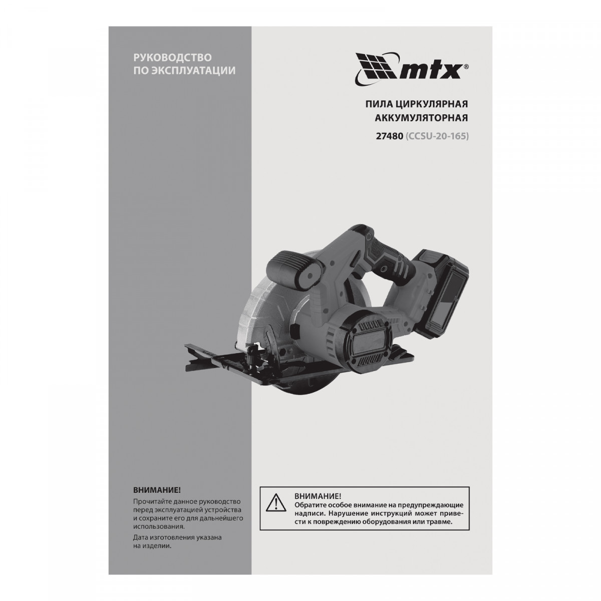 Пила циркулярная аккумуляторная CCSU-20-165, 165 мм, Li-Ion, 20 В// MTX
