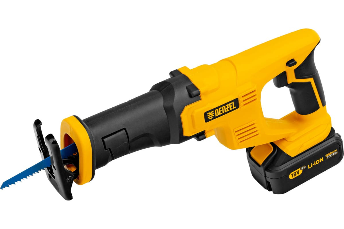 Сабельная аккумуляторная пила работает от аккумулятора Li-Ion с рабочим напряжением 18 В. Предназначена для распила фанеры, досок, ДСП, ДВП, пластика, а также для обрезки веток. Максимальная глубина пропила в древесине составляет 115 мм, в стали — 10 мм. Оснастка совершает до 3000 ходов в минуту, что обеспечивает эффективную работу.Универсальный аккумулятор емкостью 4 А/ч, с интеллектуальной системой распознавания нагрузки, рассчитан на длительный срок службы. Он совместим со всеми инструментами единой платформы Denzel battery system 18V серии IB.Преимущества