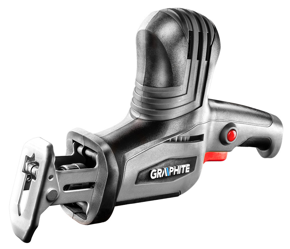 Сабельная пила GRAPHITE  мощностью 350 Вт используется мастерами-любителями для строительно-ремонтных работ. Подходит для распиловки металла, пластика и древесины. Имеет универсальное крепление полотен. При смене полотен не требуется дополнительный инструмент. Нескользящий материал на основной рукоятке обеспечивает надежный хват инструмента. Пила поставляется в чемодане.