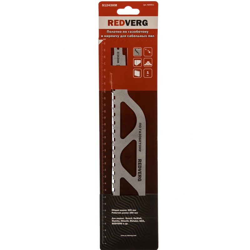 Пилка для сабельной пилы S2243 HM по газобетону REDVERG 455x30х1.5 2TPI, 1шт