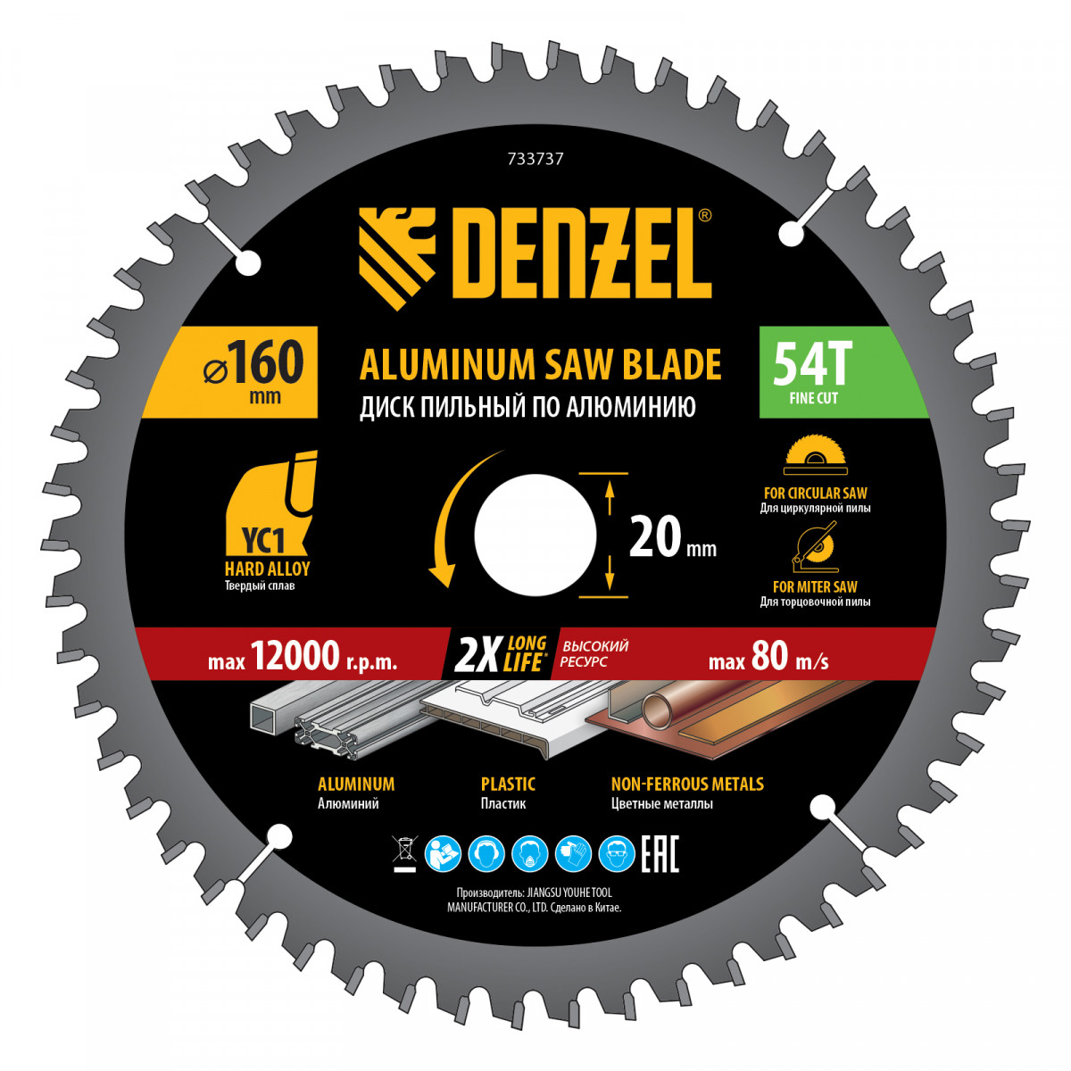 Пильный диск по алюминию ф160 х 20 мм, 54 зубьев Denzel