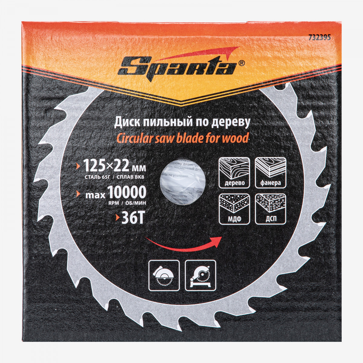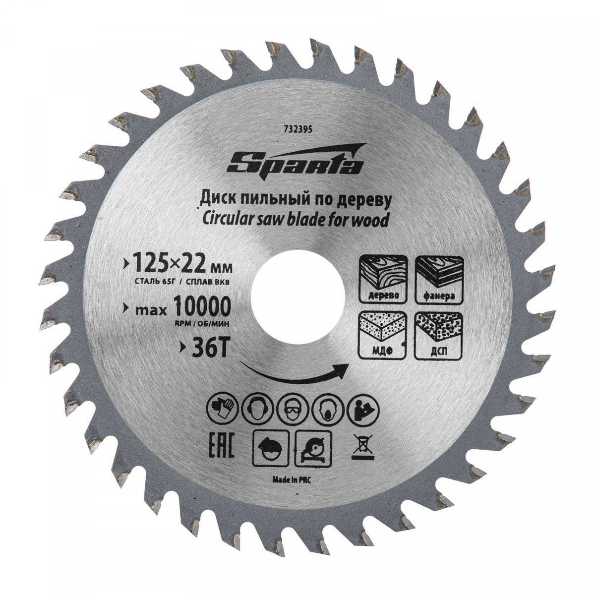 Пильный диск по дереву, 125 х 22 мм, 36 зубьев Sparta