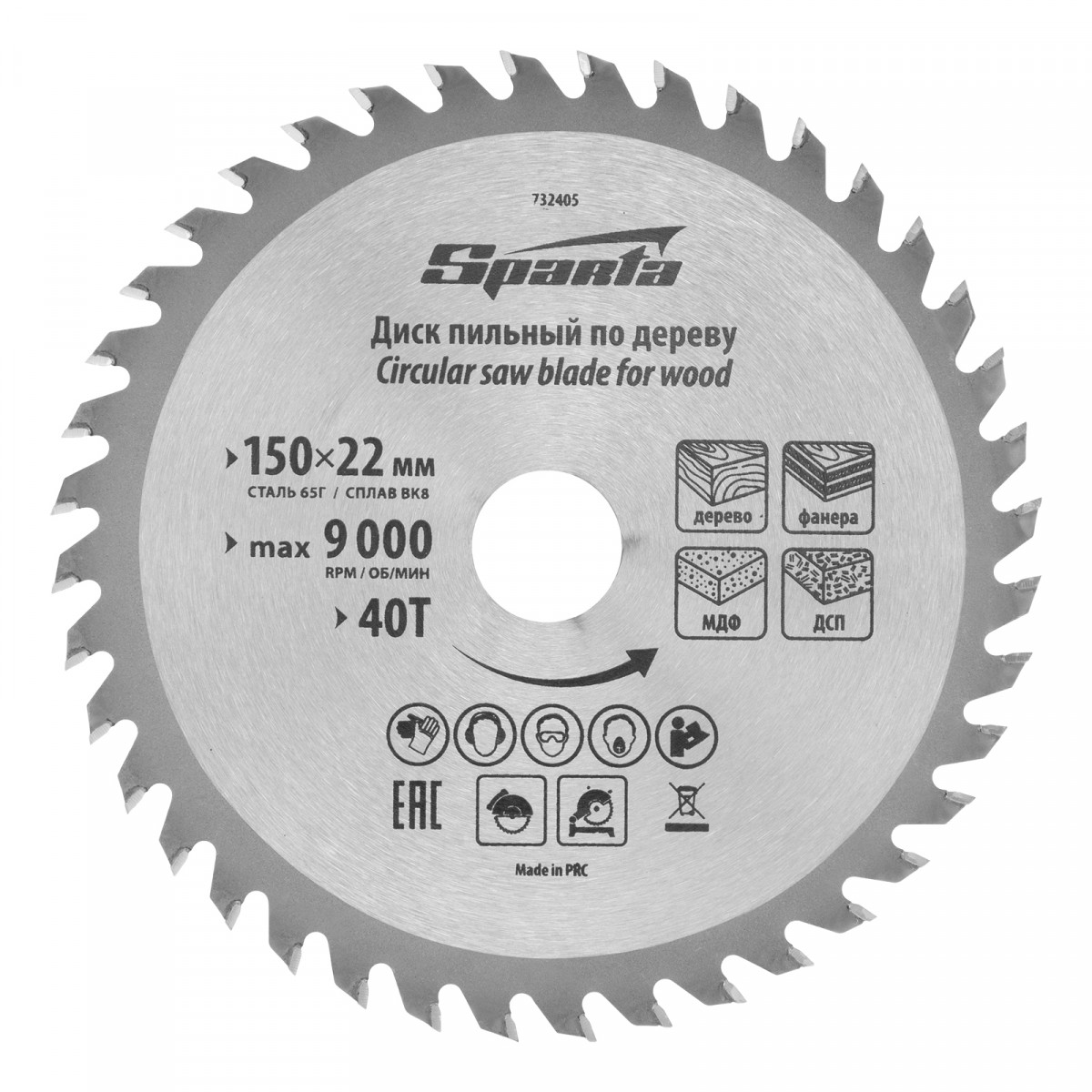 Пильный диск по дереву, 150 х 22 мм, 40 зубьев Sparta