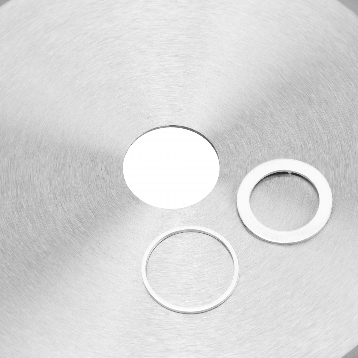 • Быстрое изменение посадочного диаметра — в комплект поставки входят переходные кольца на 20 и 16 мм.