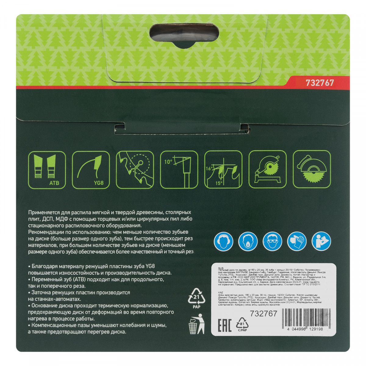 Пильный диск по дереву Сибртех 732767 диаметром 160 х 20 мм, с 36 зубьями и переходным кольцом 20/16, предназначен для быстрого распила древесины мягких и твердых пород, фанеры, ДСП, МДФ. Используется с циркулярными и торцовочными пилами с посадочным диаметром 20 мм. Переходное кольцо 20/16 позволяет при необходимости изменить размер посадки. Средние зубья позволяют добиться оптимального соотношения качества и скорости реза. Диск подходит для бытового применения.