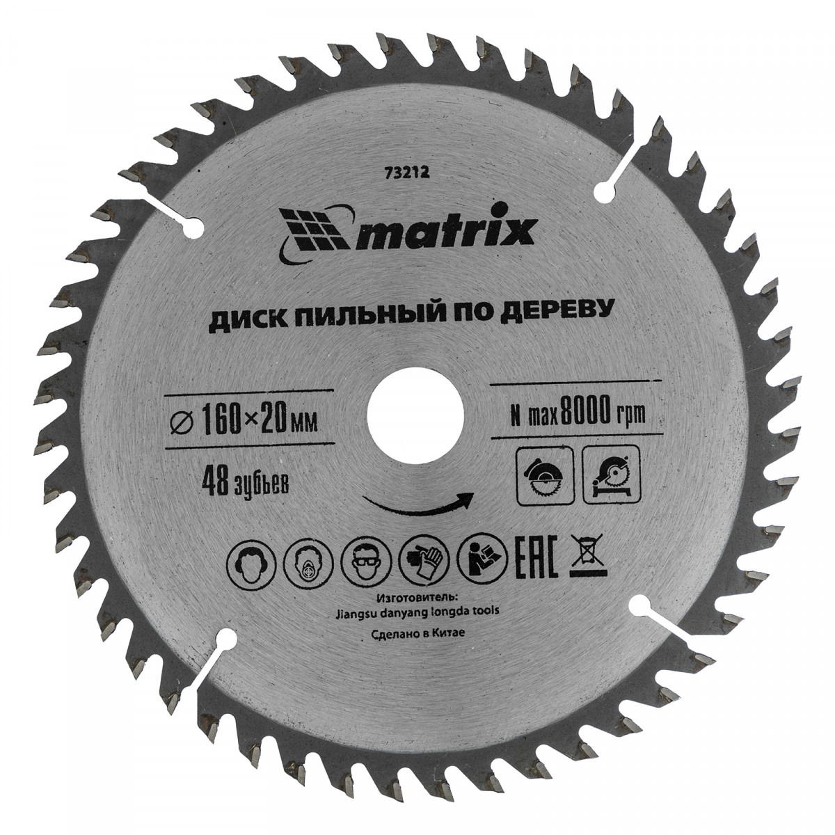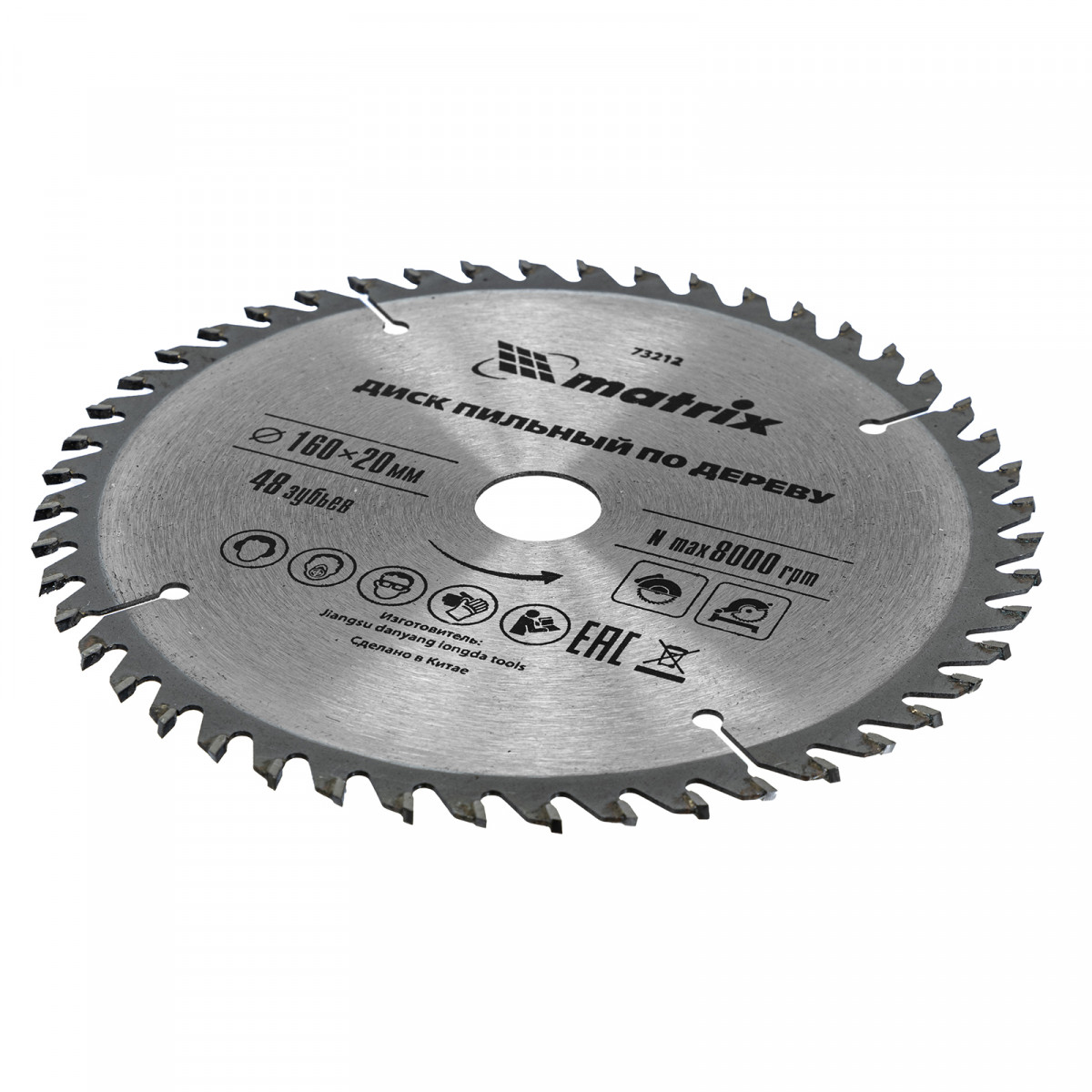 Пильный диск по дереву, 160 х 20 мм, 48 зуба, кольцо 16/20 Matrix Professional