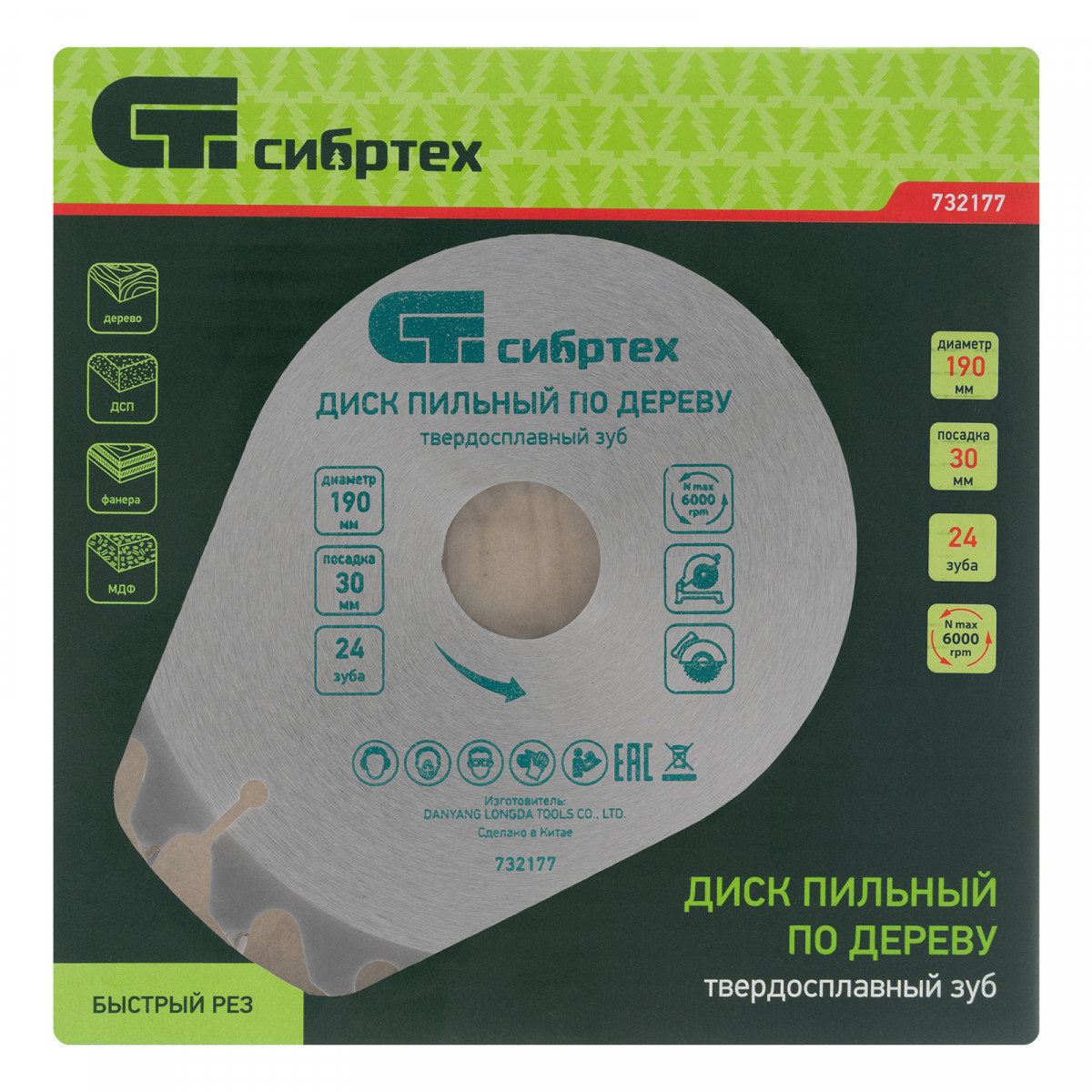 Пильный диск по дереву, 190 х 30 мм, 24 зуба Сибртех