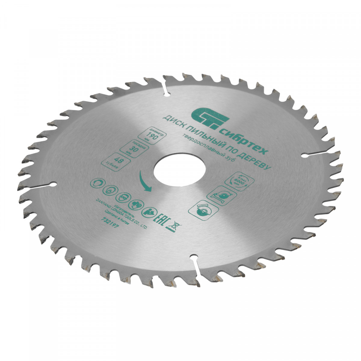 Пильный диск по дереву, 190 х 30 мм, 48 зубьев Сибртех