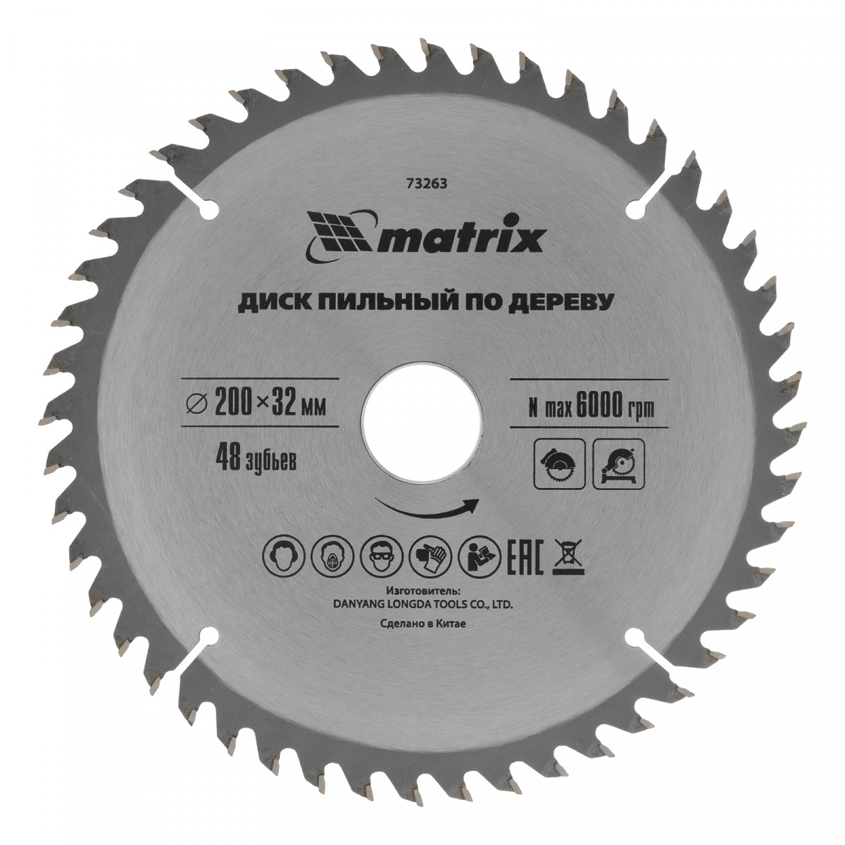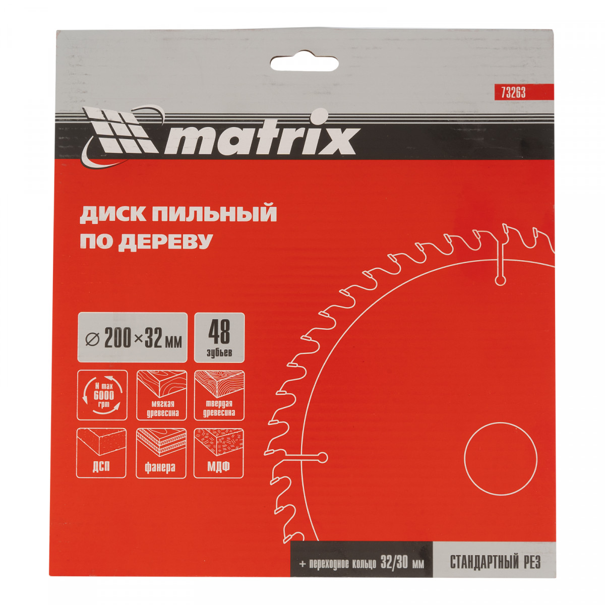 Пильный диск по дереву, 200 х 32 мм, 48 зубьев, кольцо 30/32 Matrix Professional