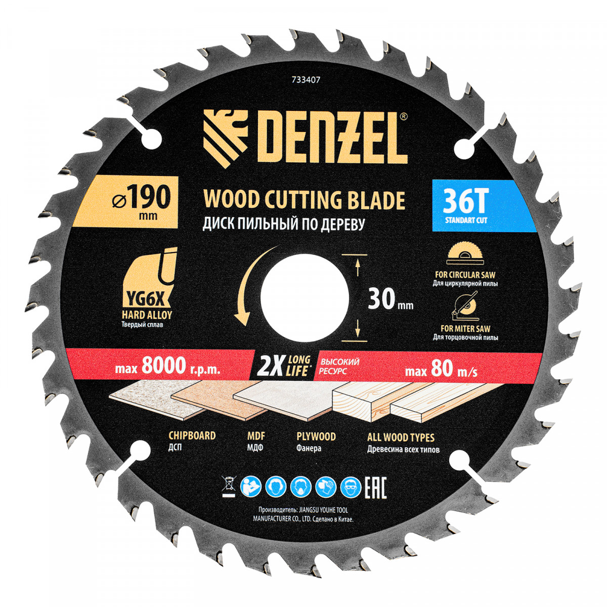 Пильный диск по дереву ф190 х 30 мм, 36 зубьев Denzel