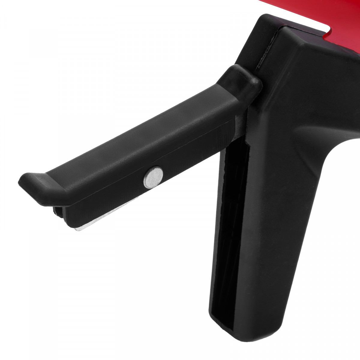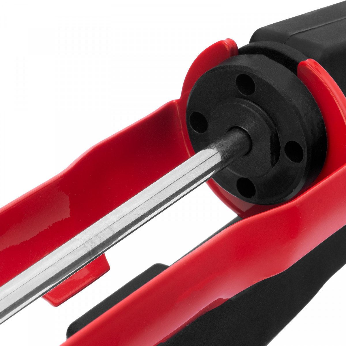 - Комфортная работа — гладкий шток упрощает подачу смеси, рукоятка смещена к центру корпуса, что обеспечивает хорошую балансировку.
