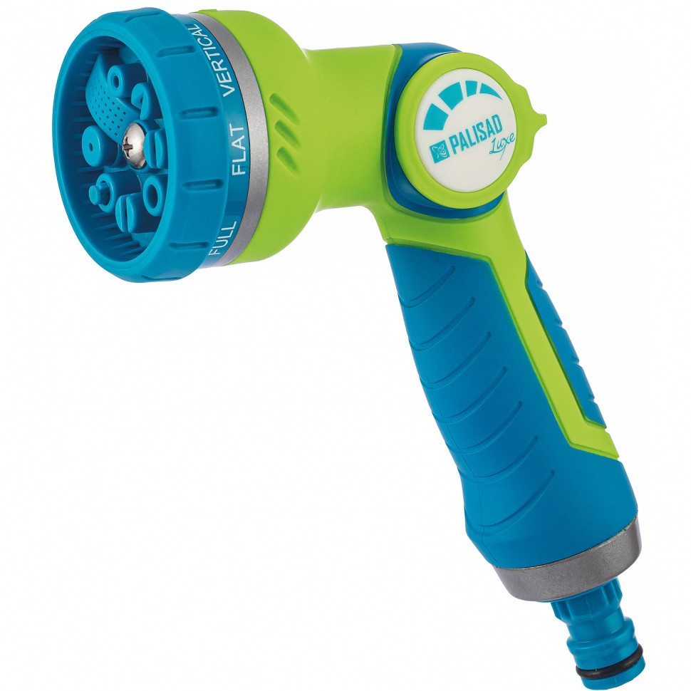 Регулируемый пистолет-распылитель присоединяется к любым поливочным системам ТМ Palisad для осуществления ручного орошения растений на участке, а также мытья дорожек и садовых принадлежностей. Он поможет садоводам и работникам коммунальных служб оросить газон, растения на участке и в парке и выполнить другие задачи. 8 режимов распыления позволят выбрать необходимый тип струи для полива различных растений.