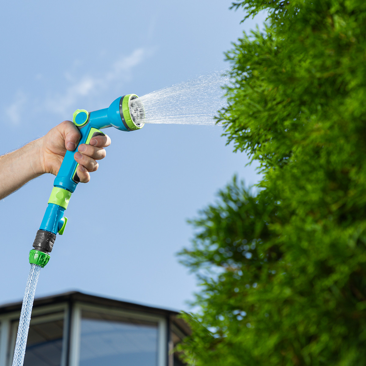• Удобная эксплуатация — подача и отключение напора производятся при помощи курка, менять режим полива не нужно.