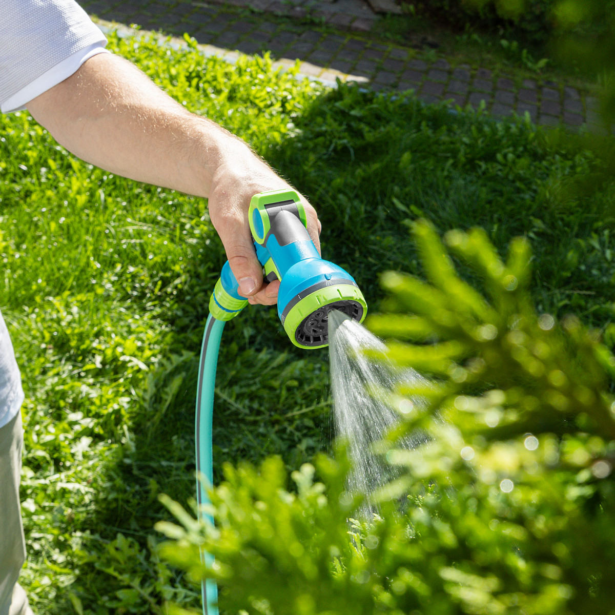 • 8 режимов полива — конусный, вертикальный и горизонтальный, душ, жесткая струя, веер, туман, а также полный полив.