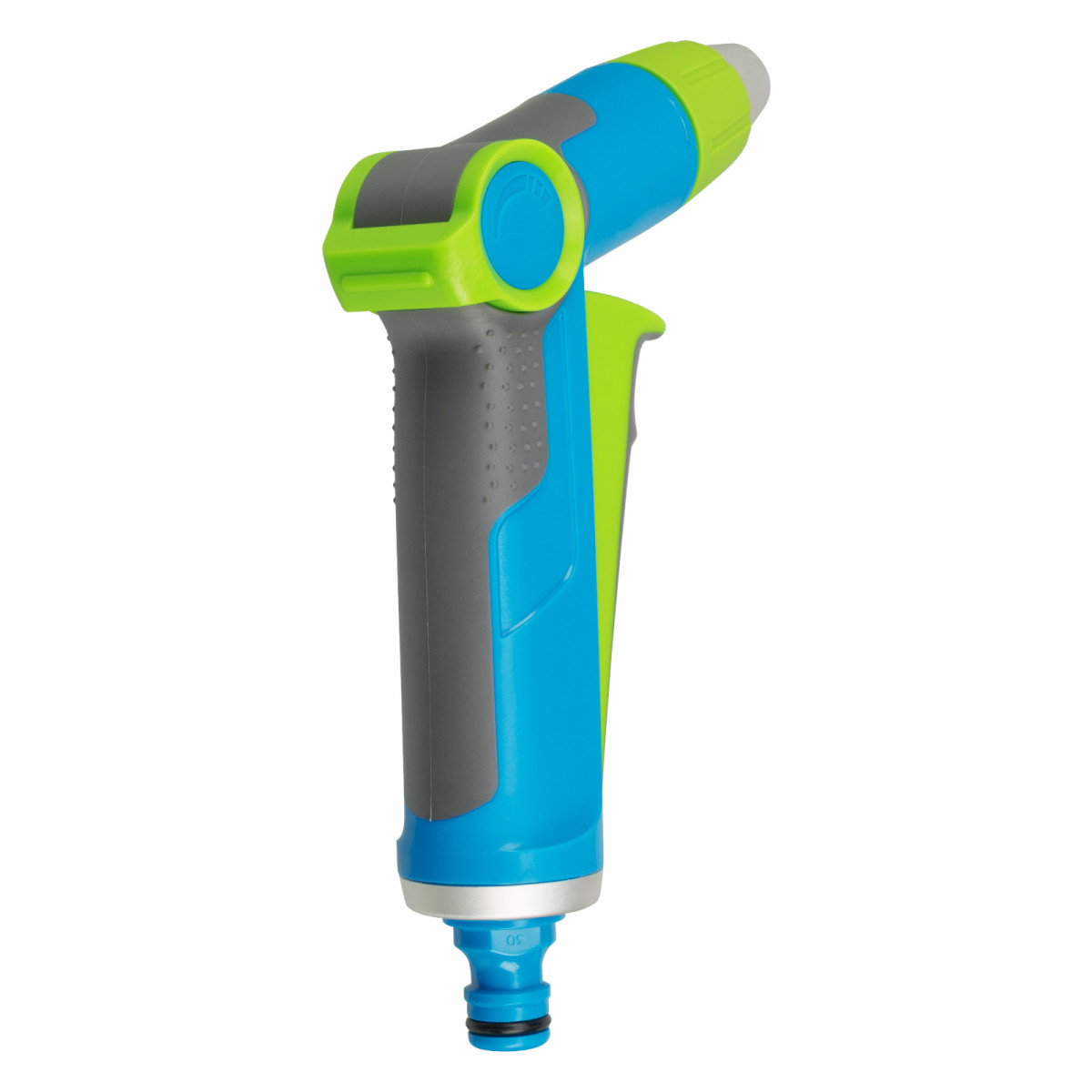 - Удобная эксплуатация — подача и отключение напора производятся при помощи курка, менять режим полива не нужно.