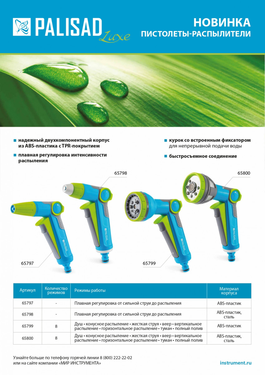 - Универсальность — распылитель можно использовать с любой системой полива ТМ Palisad.