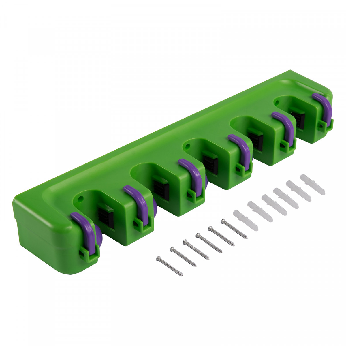 Пластиковый настенный держатель для садово - огородного инструмента, 5 ячеек, 6 крюков, Palisad