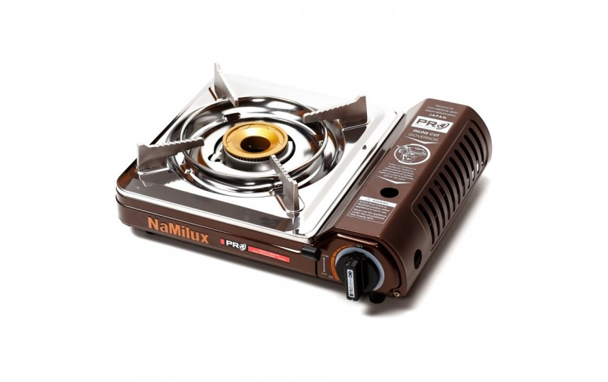 NaMilux NA-PL2013PS - портативная газовая плита в пластиковом кейсе для хранения. Работает от цанговых 220 г баллонов. Встроенный пьезоподжиг. Теплообменная пластина, поддерживающая стабильное давление газа в баллоне на морозе.