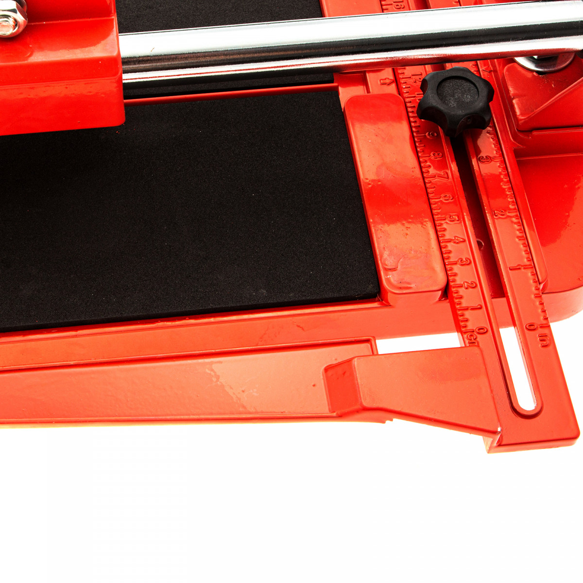 Плиткорез MTX 87605 с литой станиной, кареткой на подшипниках и усиленной рукояткой, используется для резки кафельной плитки размером до 400 х 16 мм. Ходовая каретка представляет собой массивный цельнолитой закрытый корпус, внутри которого размещаются цилиндрические шариковые подшипники, благодаря которым каретка перемещается по направляющим свободно даже при их загрязнении. Отсутствие люфтов в каретке позволяет выполнять рез максимально точно. Инструмент будет полезен мастерам в ходе бытовых облицовочных работ.