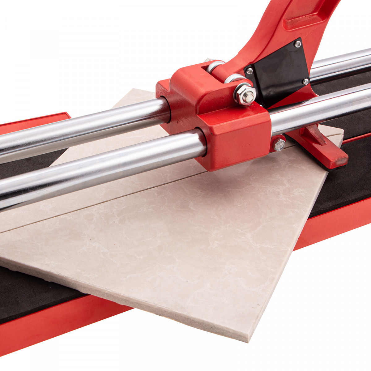 Плиткорез MTX 87609 с литой станиной, кареткой на подшипниках и усиленной рукояткой, используется для резки кафельной плитки размером до 600 х 16 мм. Ходовая каретка представляет собой массивный цельнолитой закрытый корпус, внутри которого размещаются цилиндрические шариковые подшипники, благодаря которым каретка перемещается по направляющим свободно даже при их загрязнении. Отсутствие люфтов в каретке позволяет выполнять рез максимально точно. Инструмент будет полезен мастерам в ходе бытовых облицовочных работ.