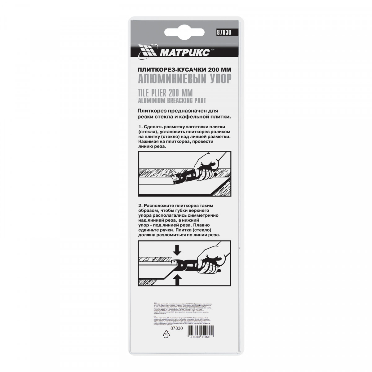 Плиткорез-кусачки, 200 мм, с алюминиевым упором Матрикс