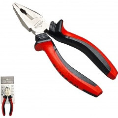 Плоскогубцы длиной 200 мм из кованой стали с никелевым покрытием для защиты от ржавчины, с двухкомпонентными ручками, применяются для различных слесарных и автомеханических работ.