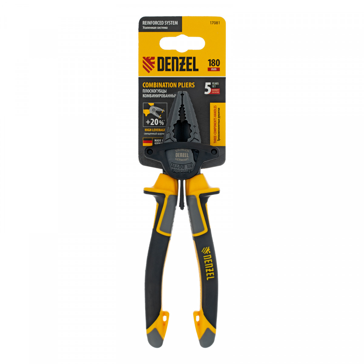Плоскогубцы комбинированные 180 мм, трехкомпонентные рукоятки Denzel