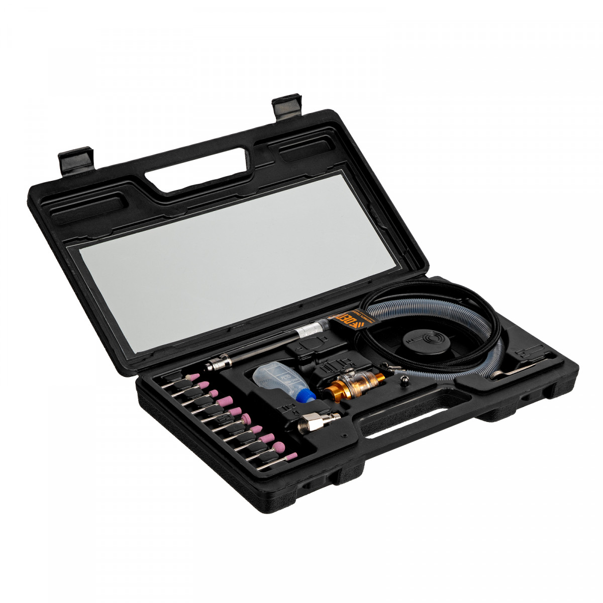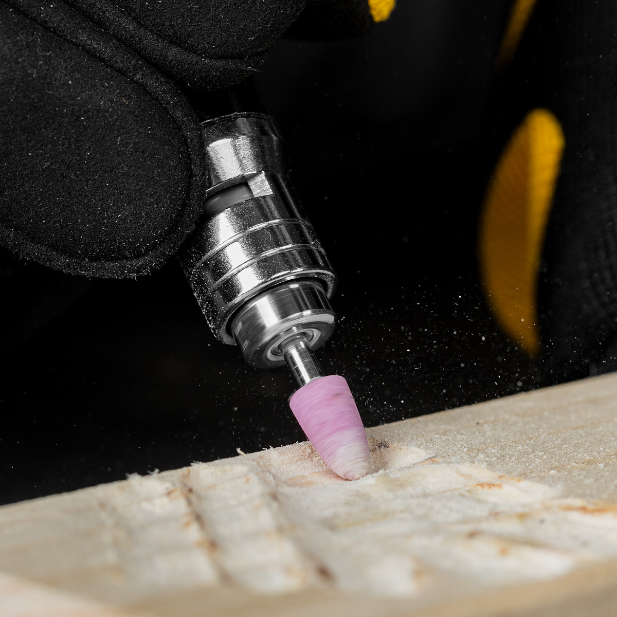 Пневматический гравер Denzel PE54000 57467 с цангой 3 мм подключается к компрессору, потребляет 57 л сжатого воздуха в минуту и обеспечивает скорость вращения оснастки 54000 об/мин. Предназначен для выполнения тонких работ: гравировки, шлифовки, зачистки. В комплект поставки входит 10 шлифовальных камней разной формы, что расширяет возможности применения инструмента. Гравер подходит для обработки металлических, каменных и других поверхностей, удобен для работы в ограниченном пространстве. Может использоваться в быту и на производстве.