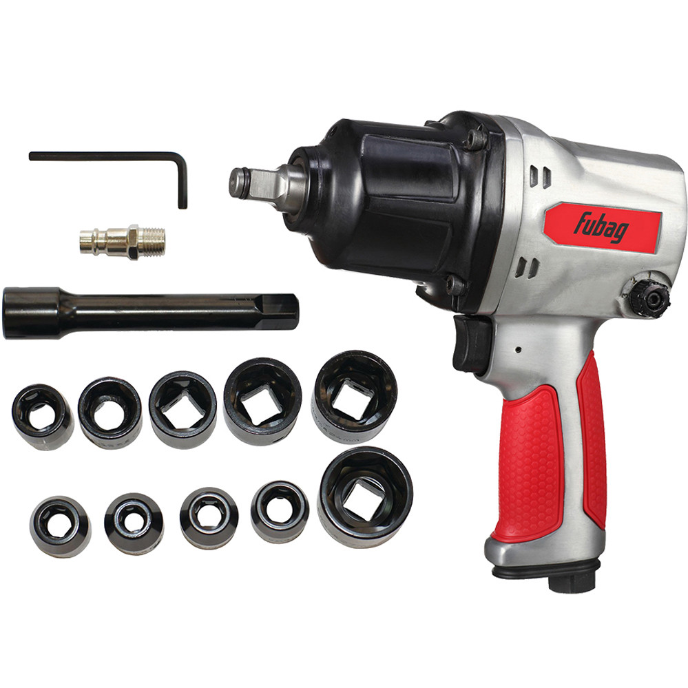 Ударный пневмогайковерт FUBAG IW900 + набор головок 100195 используется в автосервисах, производственных цехах, ремонтных мастерских. Высокое значение крутящего момента позволяет работать с достаточно нагруженными соединениями. Инструмент поставляется в комплекте с 10 головками, что расширяет его спектр применения.