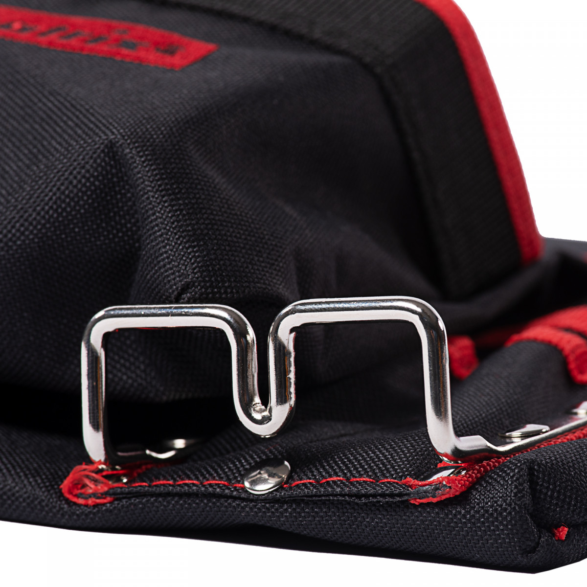 • Быстрый доступ к молотку и клещам — металлические держатели для них закреплены снаружи подсумка.