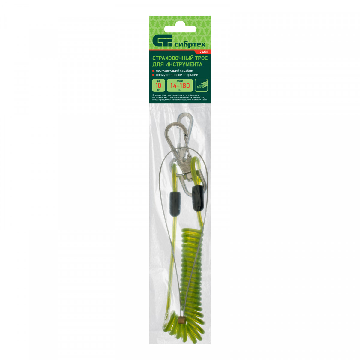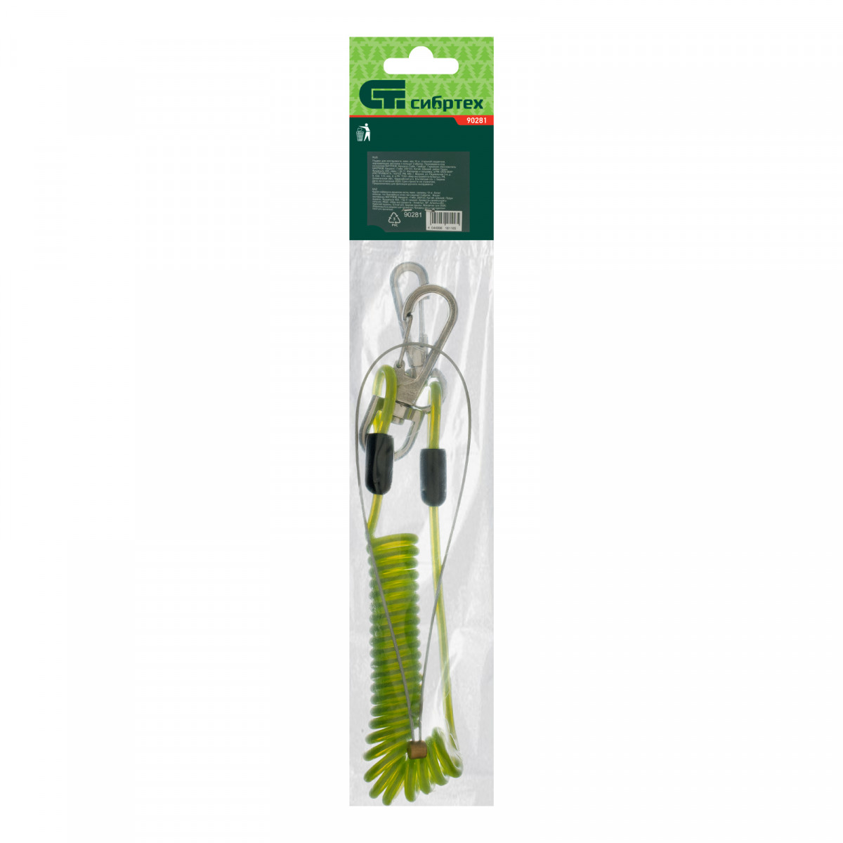 Подвес для инструмента Сибртех 90281 со стальным сердечником, нержавеющими застежкой и кольцом, предотвращает падение инструмента весом до 10 кг во время выполнения работ на высоте. Растягивается до 140 см, поэтому даже на вытянутой руке с инструментом комфортно работать. Пригодится на строительной площадке.