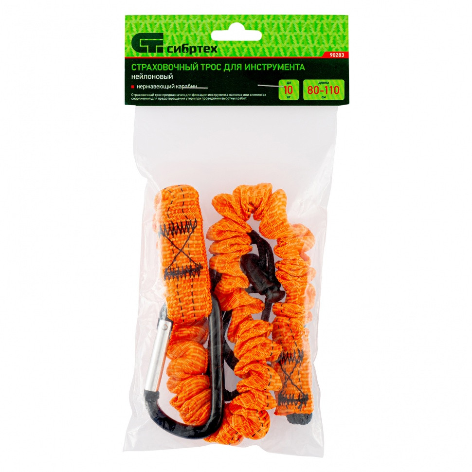Нейлоновый подвес Сибртех 90283 с карабином выдерживает максимальный вес 10 кг и предназначен для предотвращения падения инструментов с высоты. Растягивается с 80 до 110 см, позволяя удерживать инструмент на вытянутой руке, не отстегивая его. Используется во время строительно-монтажных работ.