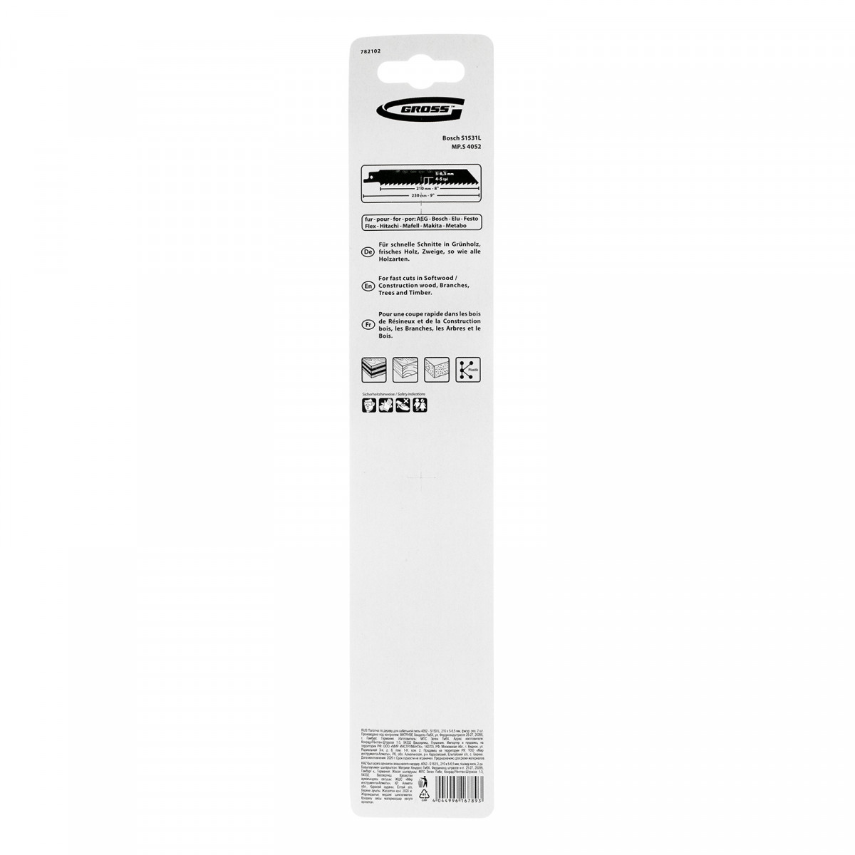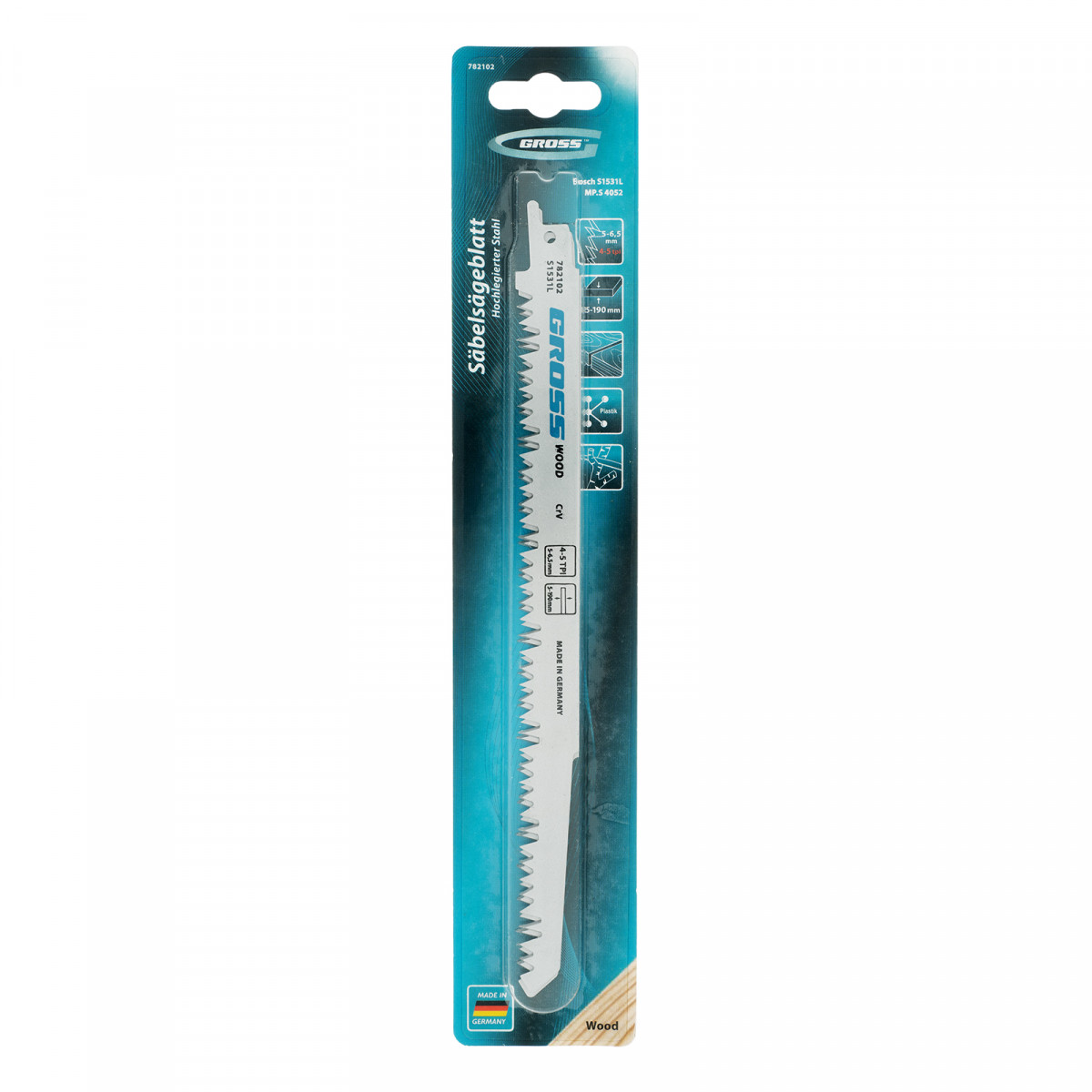 Полотна по дереву для сабельной пилы 4052 - S1531L, 210 x 5-6.5 мм, фигурный рез, 2 шт. Gross