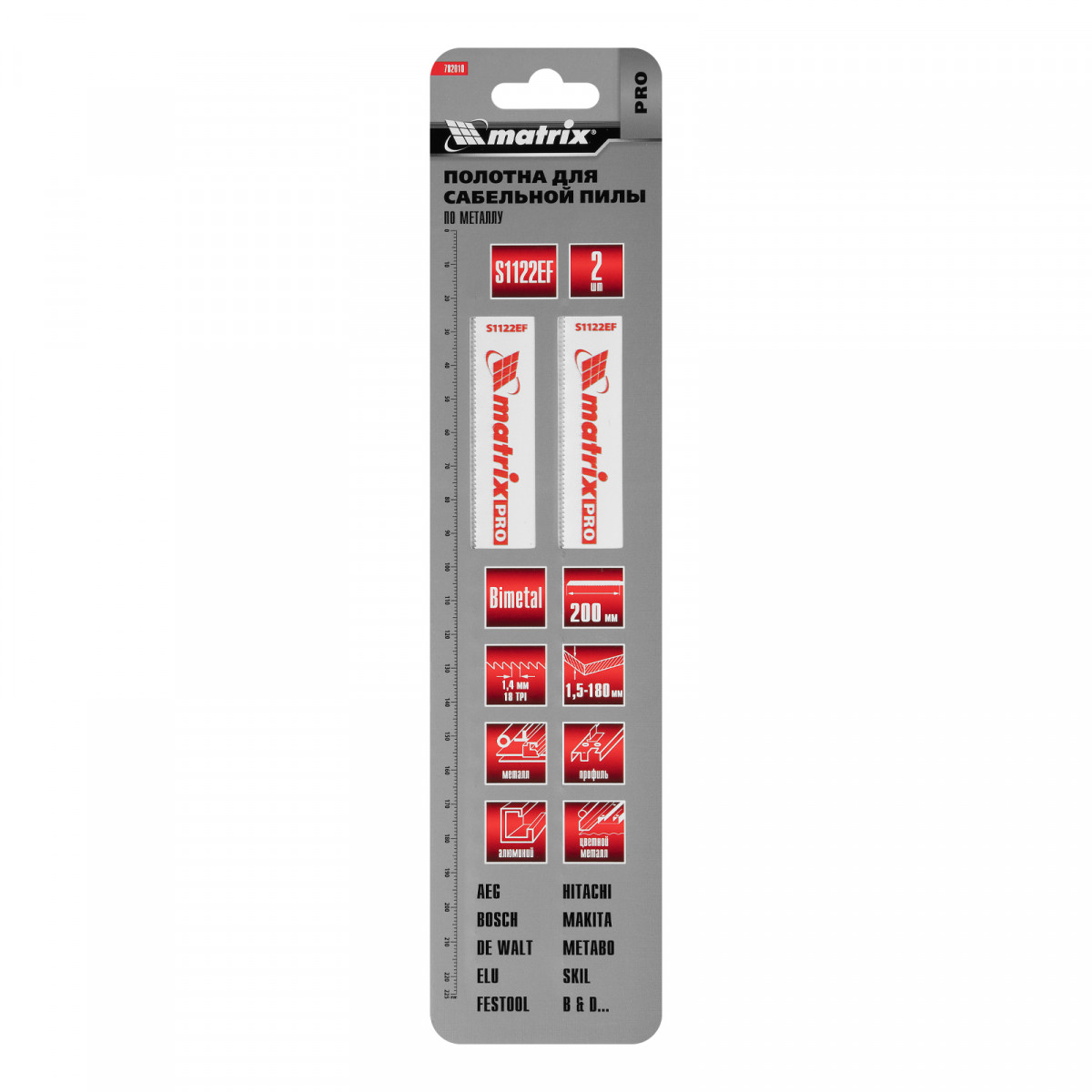 Полотна по металлу Matrix PRO 782010, S1122EF, с рабочей длиной 200 мм и шагом зубьев 1,4 мм, Bimetal, — оснастка для сабельной пилы. Позволяют работать с листовым металлом, в том числе цветным, а также с трубами и алюминиевыми профилем толщиной до 180 мм. Совместимы с большинством современных электропил. Полотна используются при проведении строительных и демонтажных работ, а также для решения бытовых задач.