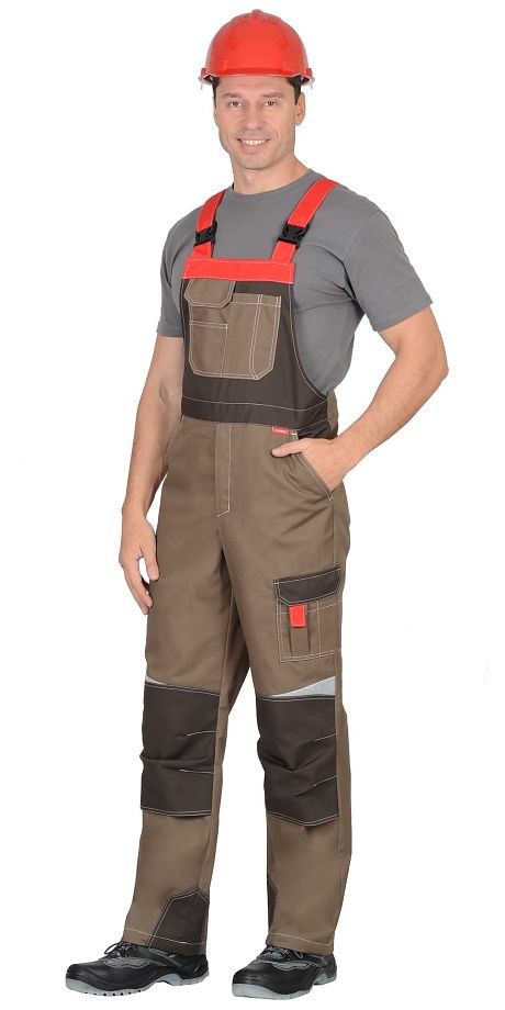 Полукомбинезон с застёжкой гульфика на молнию и застёжкой в боковом шве на пуговицы; с различными многофункциональными карманами; с объемными наколенниками. СОП-50 мм. ГОСТ 12.4.280-2014