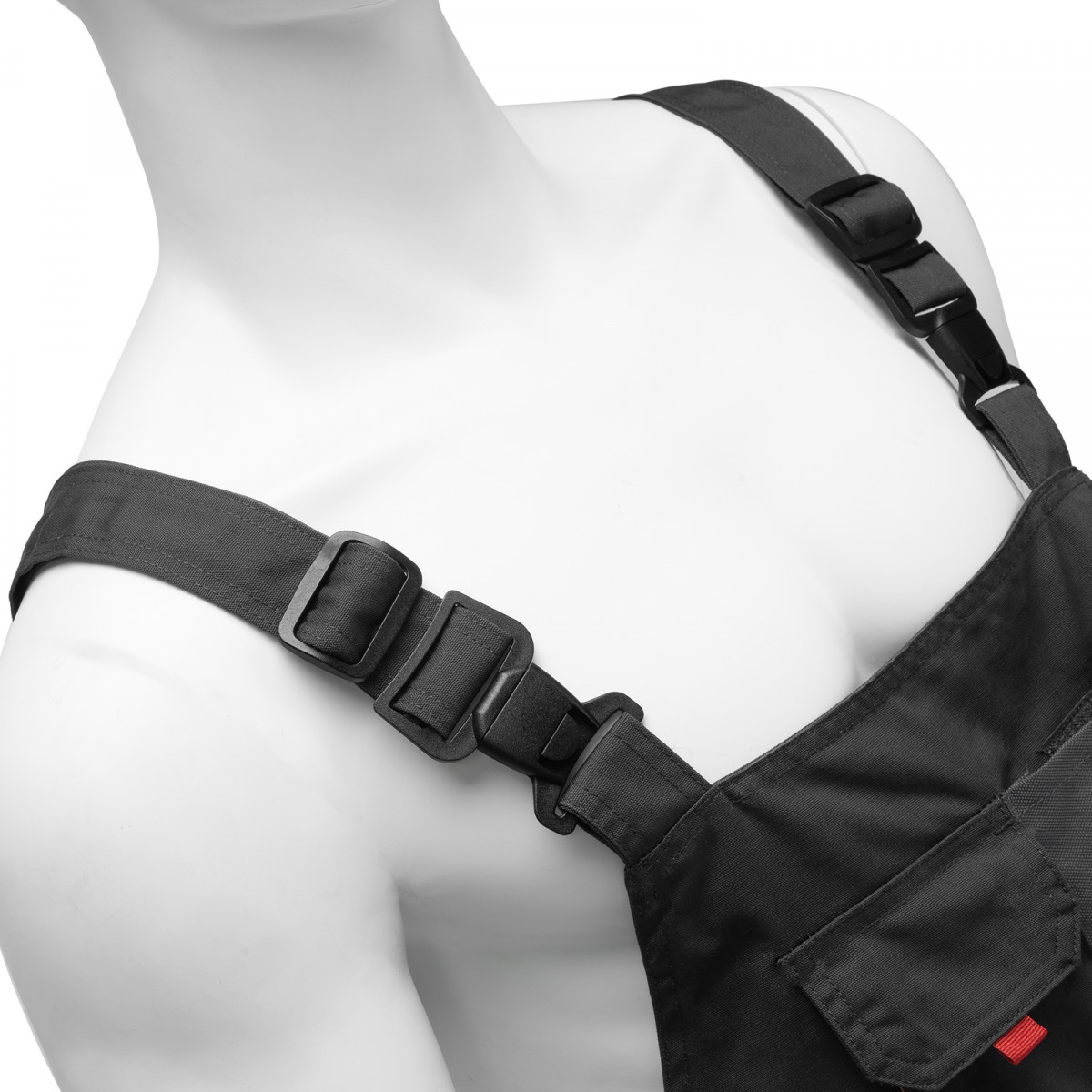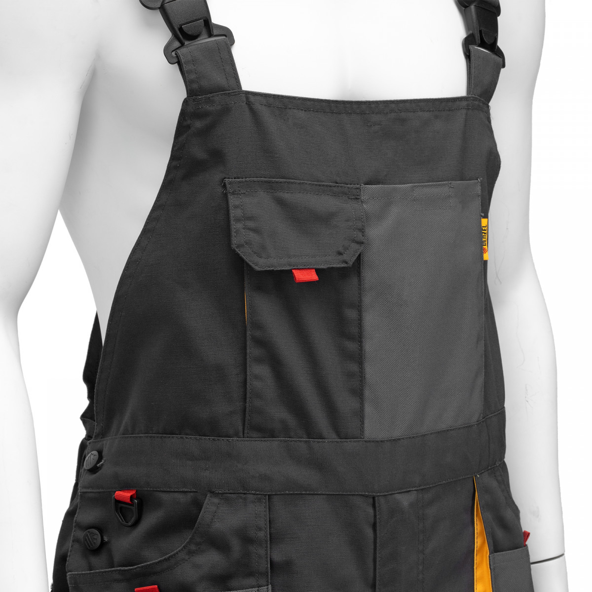 • Большое количество карманов — полукомбинезон снабжен специальными отделениями для инструментов, а в карманах с «липучками» можно разместить мобильный телефон, крепеж и необходимые мелочи.