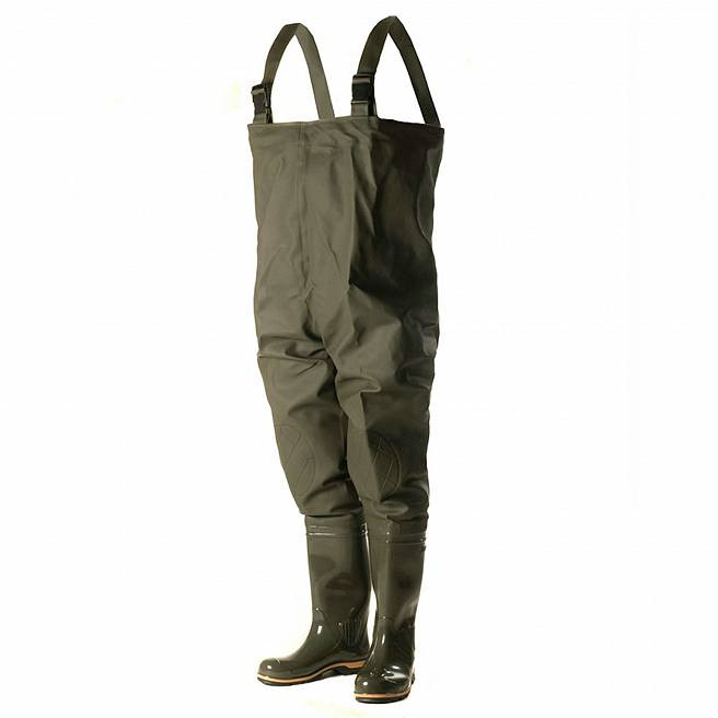 Классический рыбацкий полукомбинезон. Верх - из легкой водонепроницаемой ПВХ-ткани (винитол) крепится к базовому сапогу из ПВХ на современном итальянском оборудовании при помощи сварки током высокой частоты. Это гарантирует абсолютную водонепроницаемость. Дополнительно применяется технология двойного шва, которая придает еще большую прочность, износостойкость и герметичность.