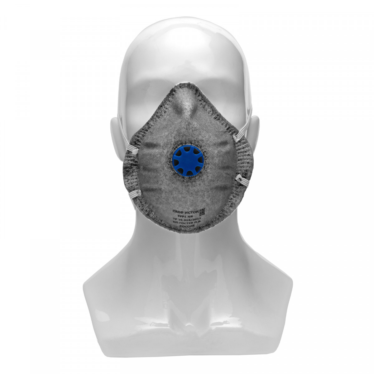 Полумаска фильтрующая формов,модель"Исток",с угольным слоем,с клапаном выдоха, FFP1 NR, 10шт